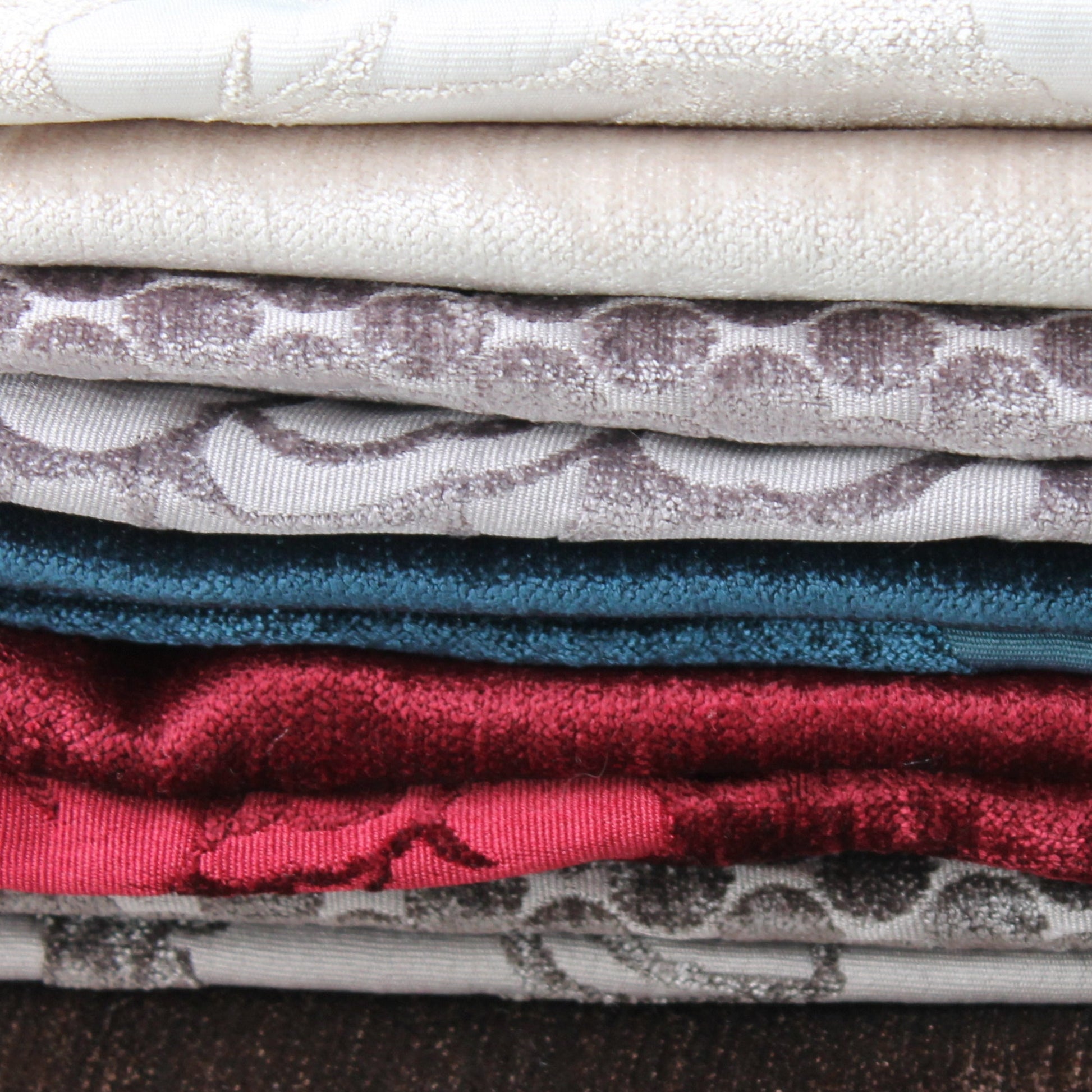 Gloss is a velvet collection of 3 fabric styles in 6 coordinating colors at a great price. The brushed velvet has a lovely sheen. The collection comes in a plain velvet fabric as well as a geometric dot pattern and a large repeat floral. They work very well together or as separate fabrics.