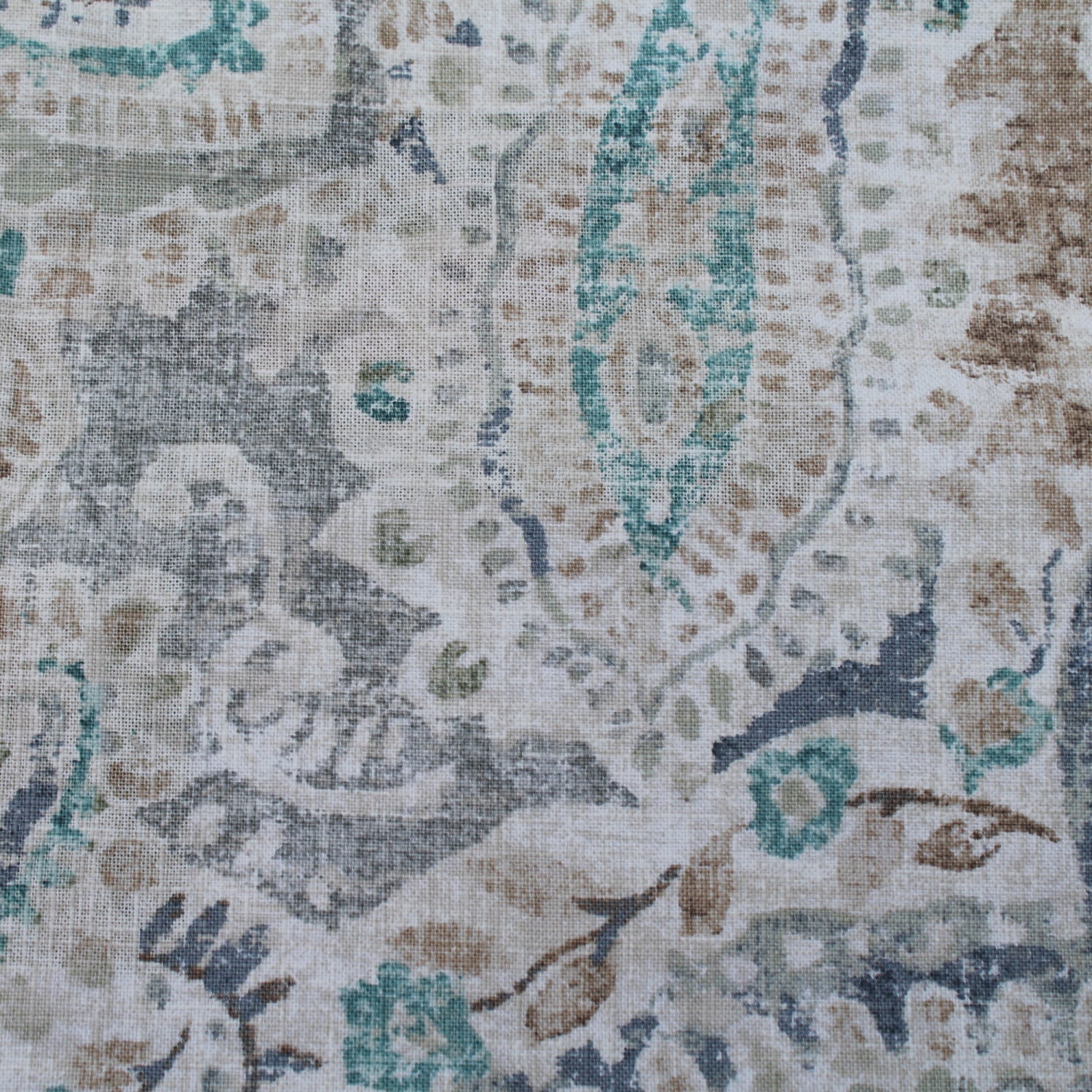 I can't exactly pinpoint one attribute of this fabric that makes me love it so much, so it must be a combination of a few elements that create a perfectly beautiful fabric. This is a block print paisley style, except it is probably not a true block print. The pattern has an aged look and the 3 colour combinations are all stunning, whether the red and blue or the washed out aqua and grey. The fabric is all cotton but it looks a bit like a linen. Perfect for curtains or upholstery.