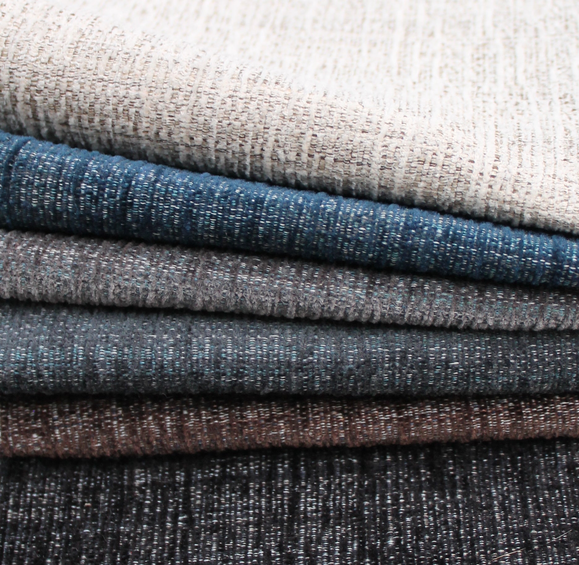 Another interesting textured chenille. This fabric has a linear color variation that gives it a woven look. Color variation is helpful in obscuring spots and spills between clean ups. The brushed texture has a nice soft feeling, owing to the addition of natural content.