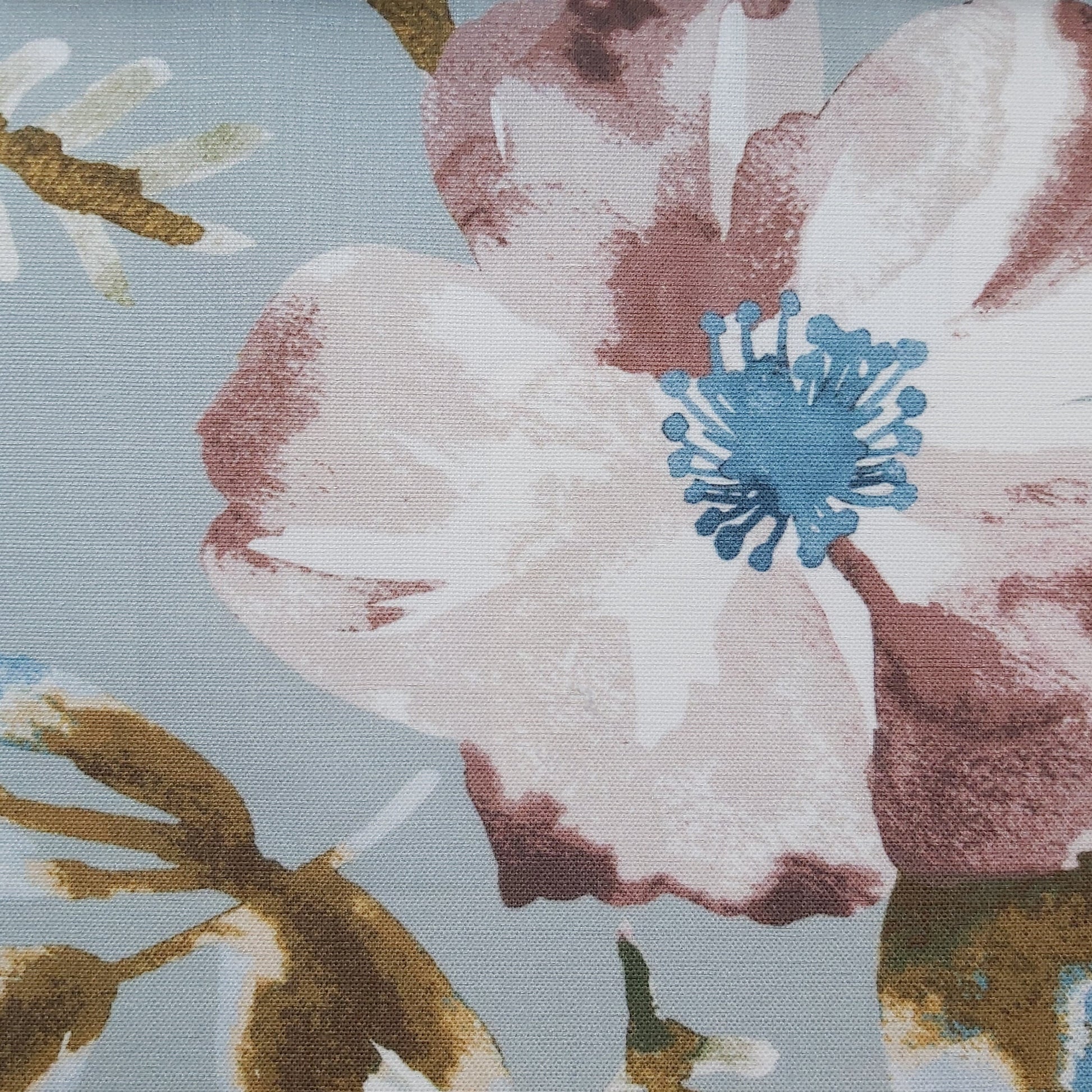 This amazing floral print looks and feels just like cotton but is a polyester. As a synthetic this fabric will hold up better and it won't fade nearly as much which can be a problem in sunny rooms. It will also have much better stain resistance.