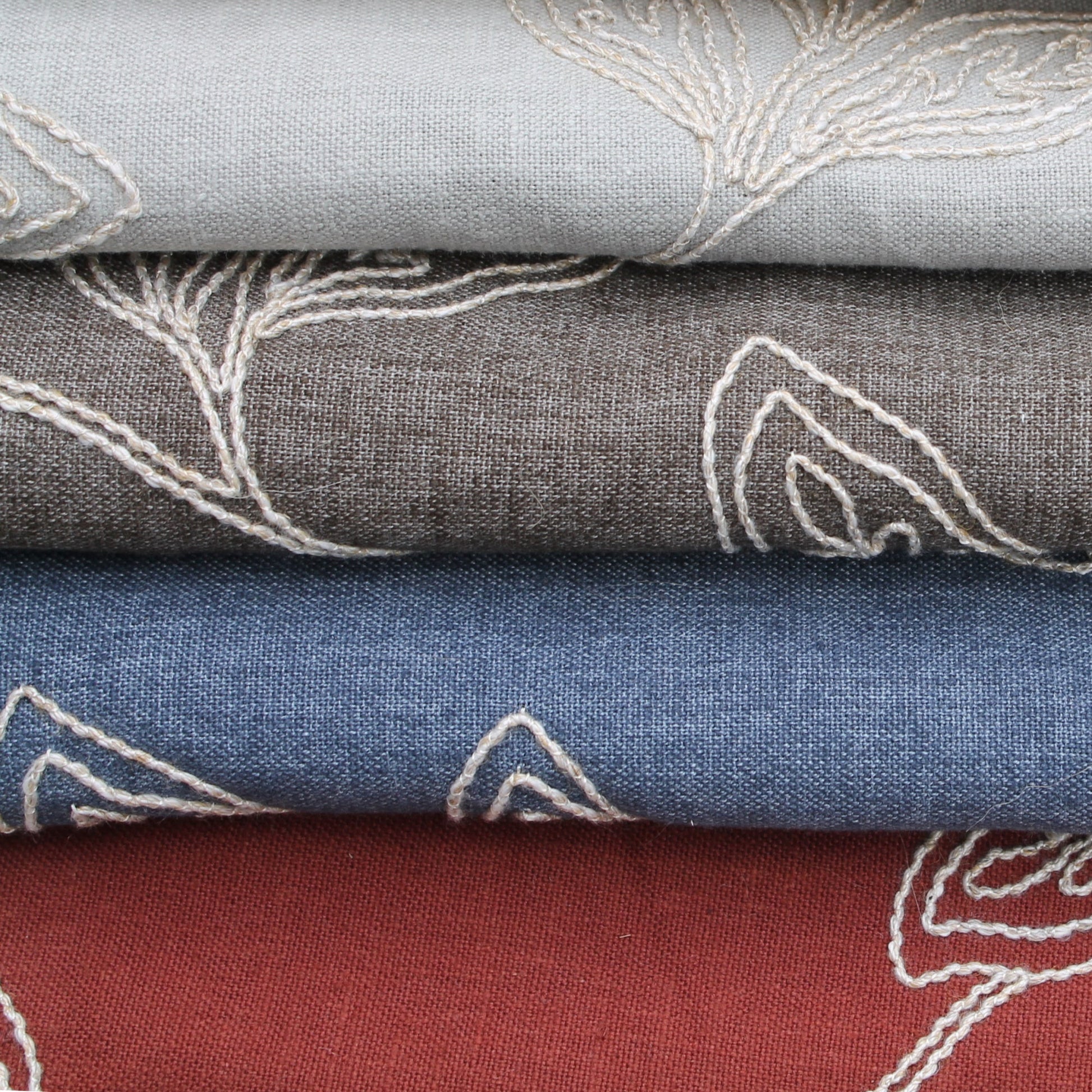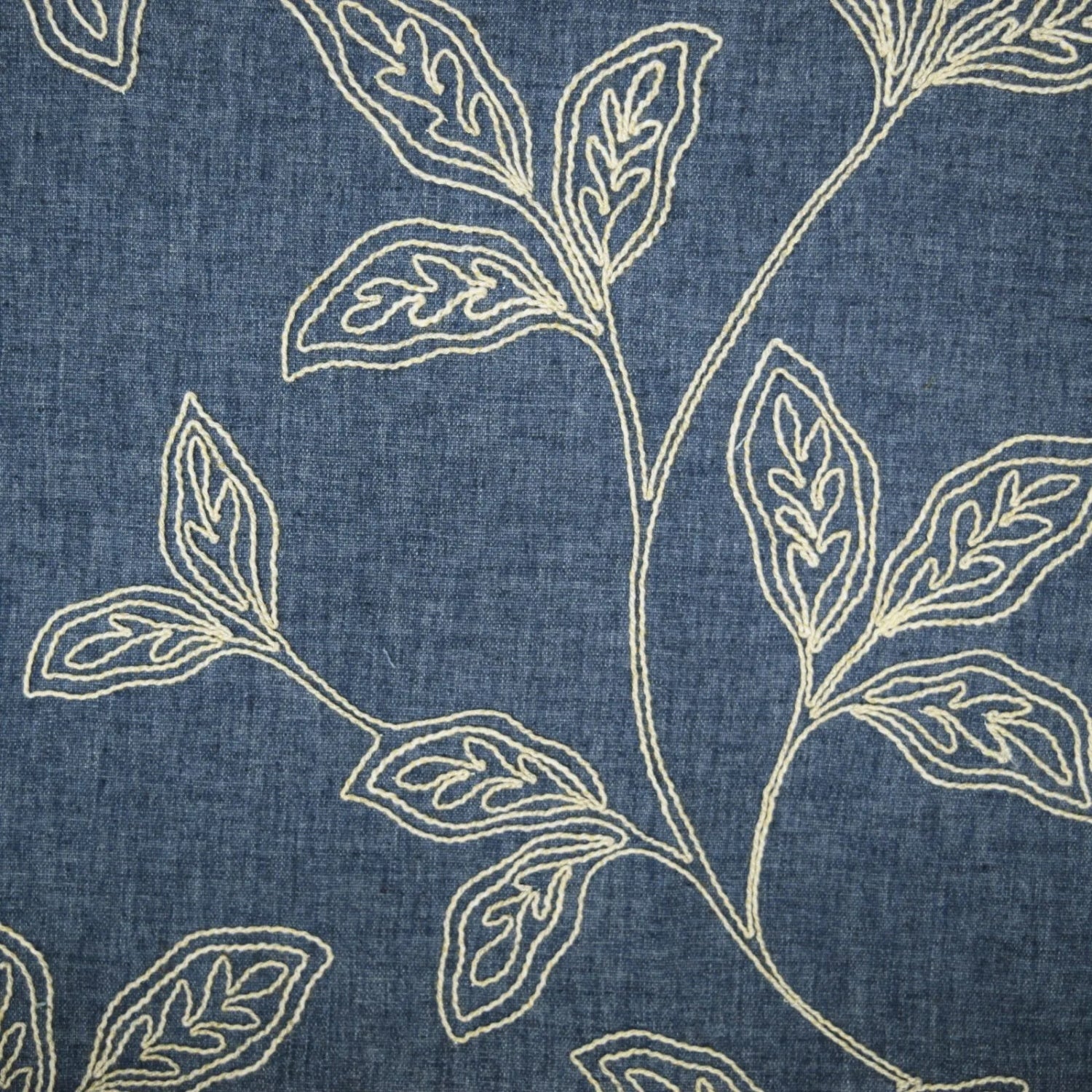 Romantic leaf and twig crewel embroidery on stonewashed linen cotton and Poly blend. The leaves are about 3".