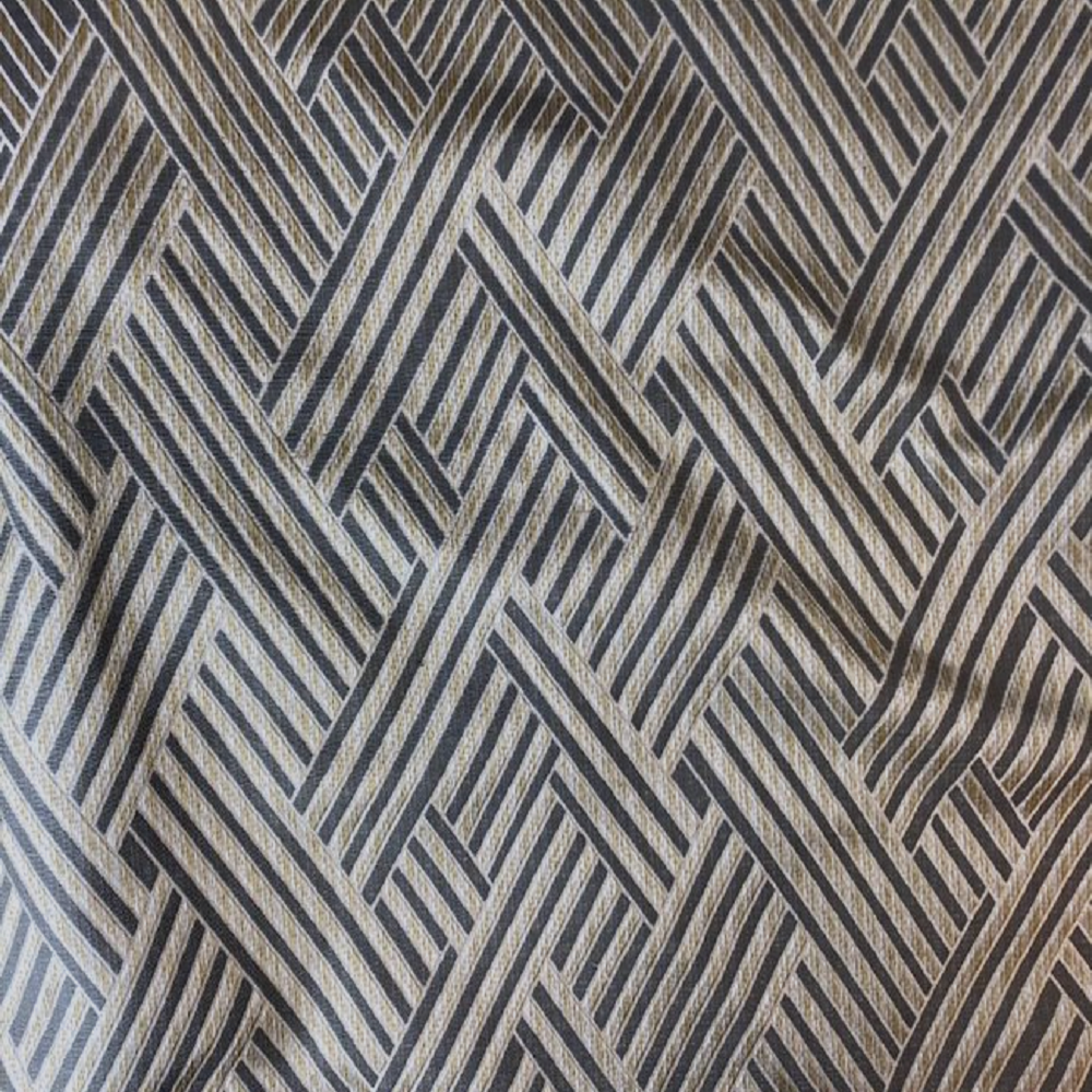 A gentle geometric available in 4 washed out slightly metallic shades. Groups of diagonal intersecting stripes in similar tones create a calming impression. For those loving the latest trend of mixed patterns, Visage coordinates well with Vignette and Casa, seen here. This fabric is mainly for drapery but could be used for accessories as well as upholstered occasional furniture, such as antique chairs.